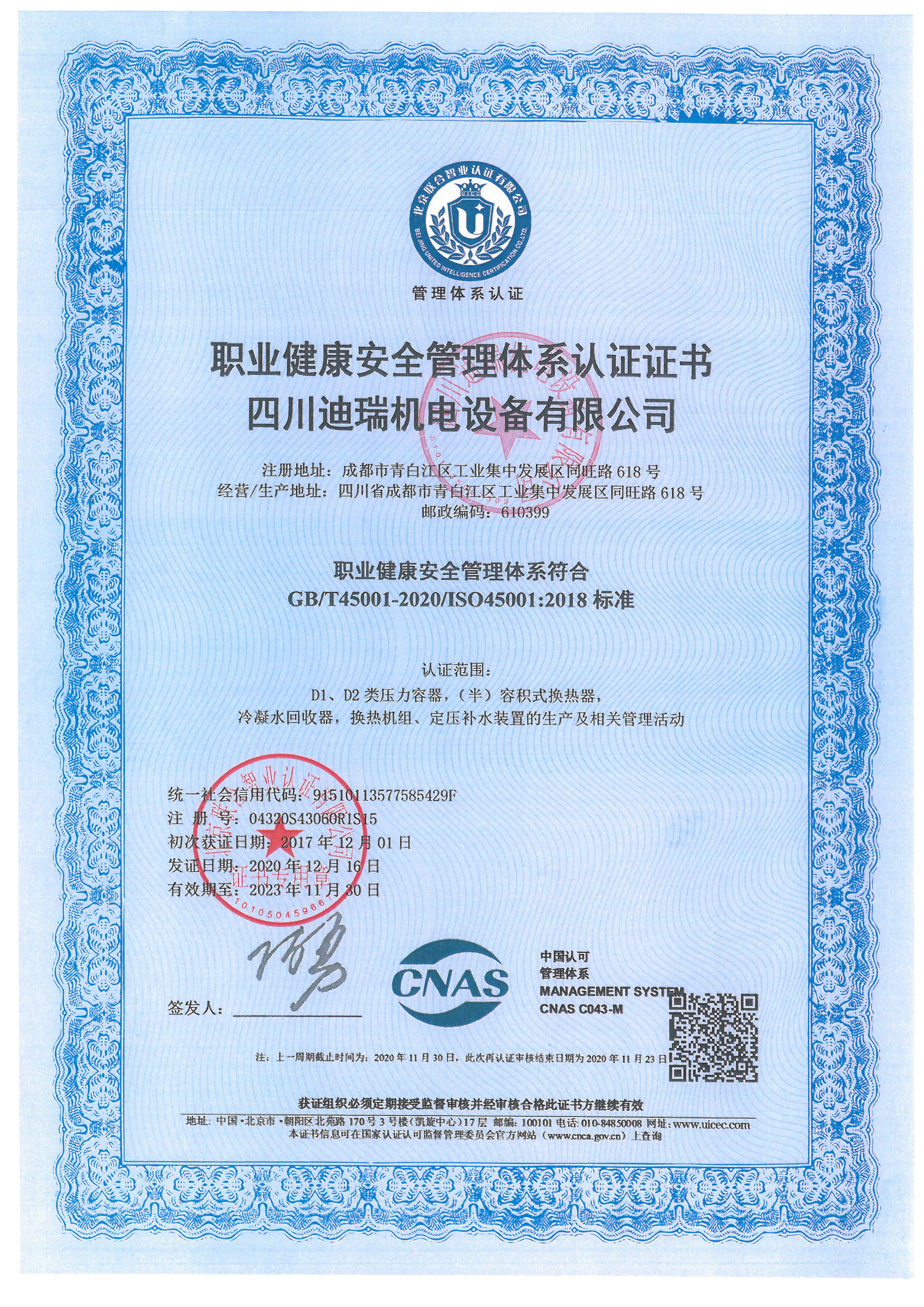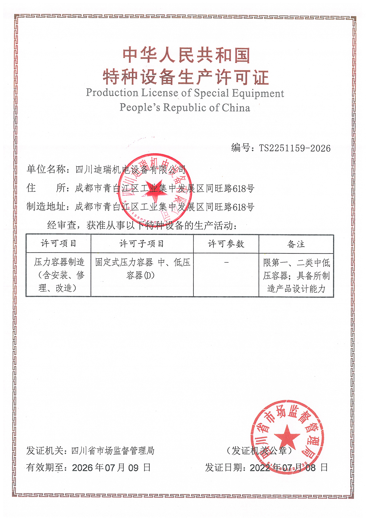 壓力容器設(shè)計(jì)/制造證書(shū)