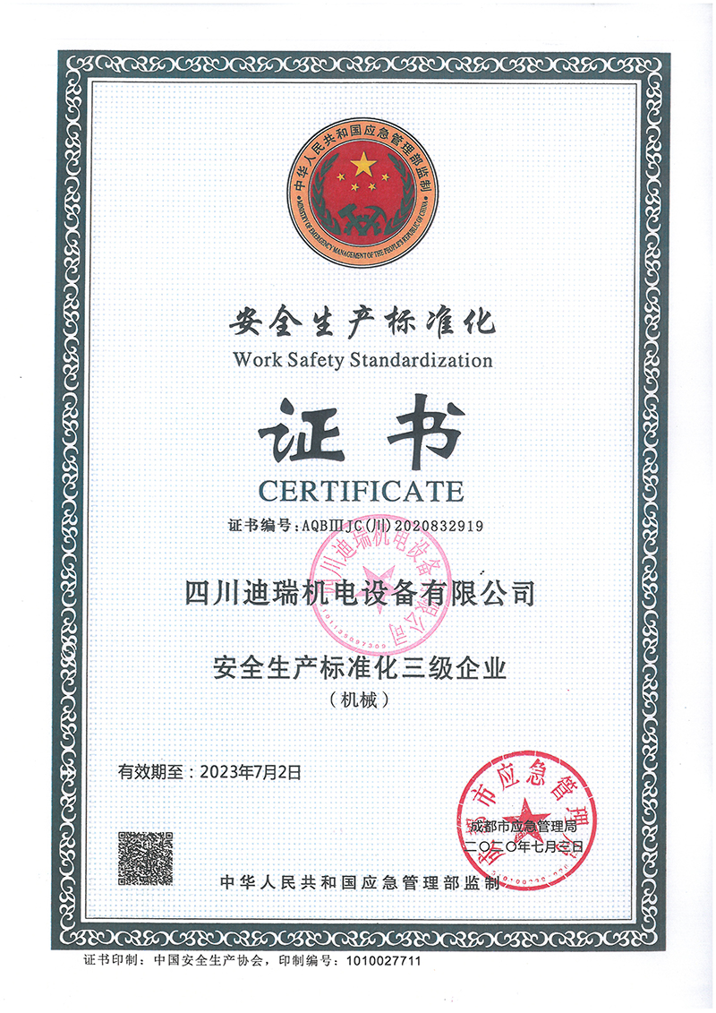 安全生產(chǎn)標(biāo)準(zhǔn)化證書(shū)